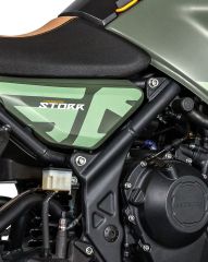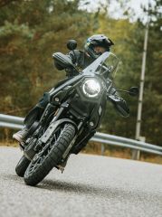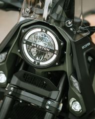 A BRIXTON Storr 500 kalandmotor robosztus kialakítását a zord északi vidék vadregényes tájáról mintázták. A Storron mindennek oka van, semmi sem csak a látszatról szól, minden célt szolgál. A magas fejidom karakteres megjelenést biztosít, emellett pedig védi a motorost az időjárás viszontagságaitól és tökéletes rálátást biztosít a nagyméretű színes TFT információs képernyő felületére. Az oldalsó elülső panelek védik a hatalmas fém benzintankot, emellett rögzítési lehetőséget biztosítanak további csomagok számára. Az optimalizált karcsú ergonómia ülő és álló helyzetben is kiváló komfortot és manőverezést biztosít számodra. Hátul egy nagyméretű csomagtartó van felszerelve, melyre doboz vagy hengerzsák is rögzíthető. A motor és a motoros biztonságát is szolgálja a gyári bukócső, a masszív kézvédő, a fém haspáncél és a hűtővédő rács. A rendkívül gazdag műszaki felszereltségnek köszönhetően a Storr 500 lendületesen vág át a nagyvárosok forgatagán éppúgy, mint az országutak kanyarjain és az erdők-mezők földútjain. Elképesztő formaterv, kategóriaelső műszaki tartalom, gazdag felszereltség -a BRIXTON Storr 500 génjeibe kódolva van a kaland!