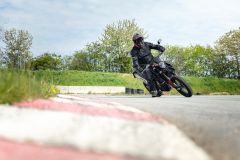 - Utcára méretezett kerekek: 100/80 R17-as első és 130/70-17-es hátsó abroncsok.